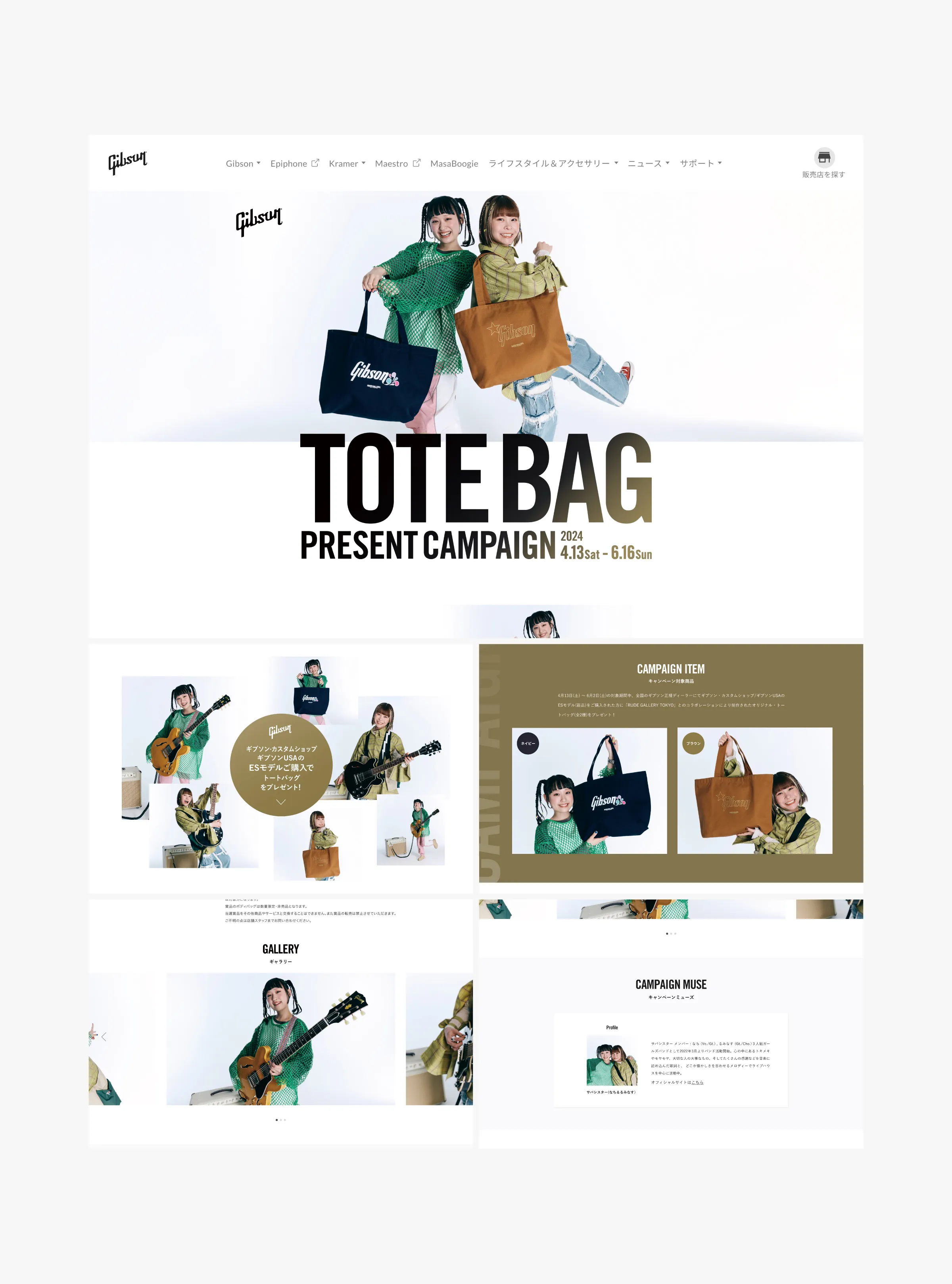 バンド「サバシスター」を起用したGibsonのオリジナルトートバッグキャンペーンの制作を担当いたしました。